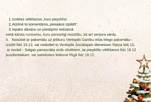 Lasīt tālāk Uzsākta iesniegumu pieņemšana Ziemassvētku pabalsta saņemšanai